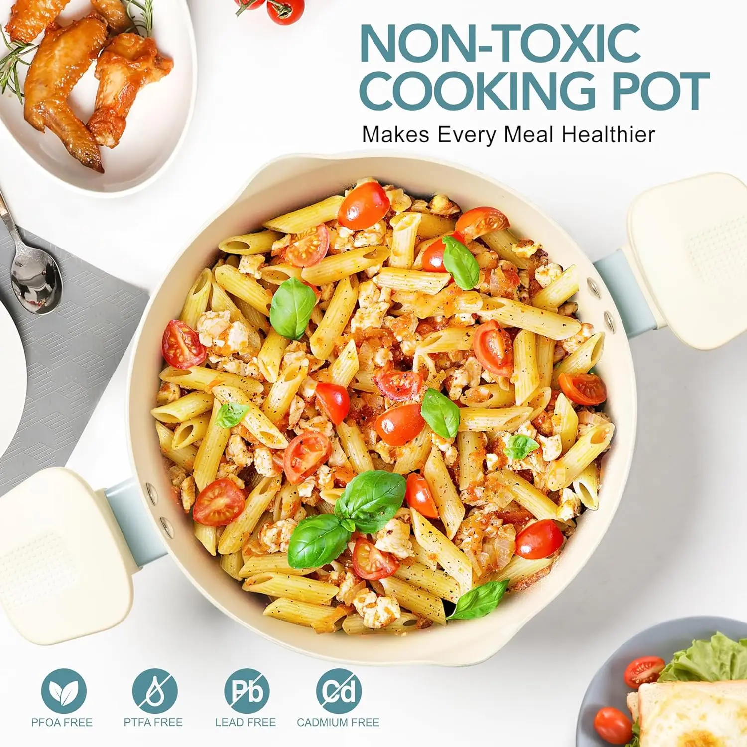 Toxic-Free Ceramic Nonstick Pot – Eco-friendly ceramic coating resists scratches, avoids chemical fumes. Food slides off effortlessly—5x easier cleaning.
